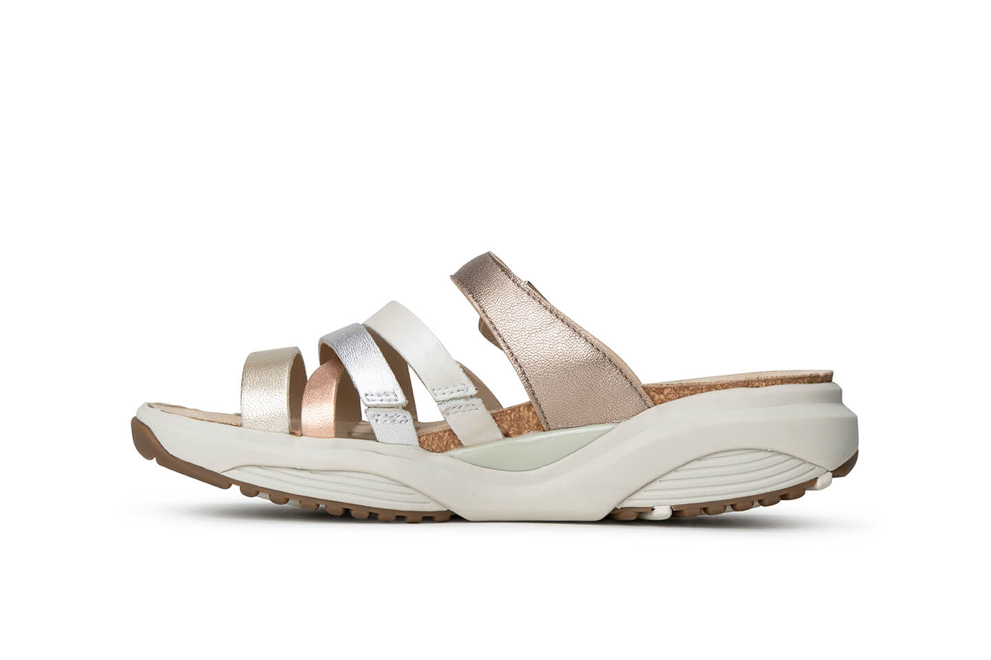 Gummi- oder Kautschuksohlen sorgen bei vielen klassischen Sandalen für einen sicheren Halt und dämpfen den Auftritt, was gerade bei längerem Tragen auf harten Böden einen großen Unterschied macht.
